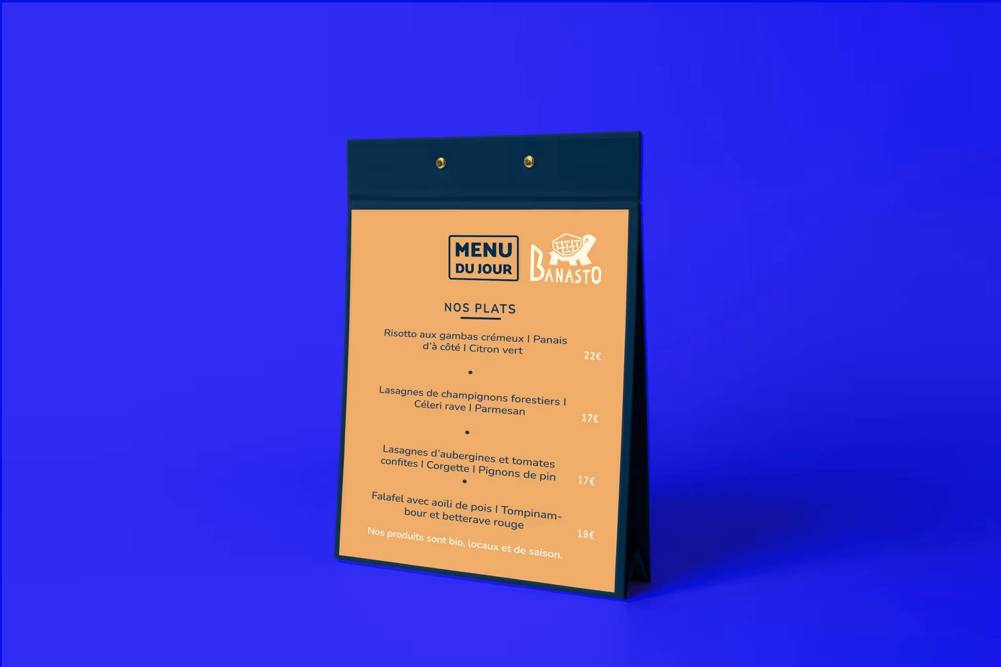Logotype et mini charte graphique réalisés pour Banasto. Un restaurant de cuisine durable et conviviale en Occitanie.