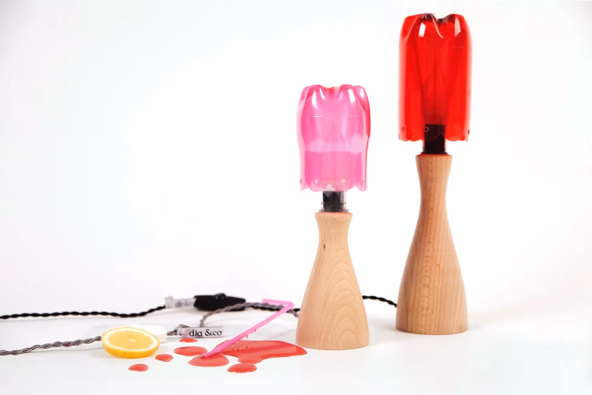 Botelia est une lampe d'ambiance LED en hêtre, mettant en scène la bouteille plastique sous toutes ses formes et couleurs. Cette petite lampe festonnée revisite le style des années 60 par la fluidité de ses pieds et les couleurs de ses abats-jour. Tous les objets dia &co ont été co-créés & conçus à 4 mains avec Sebastian Dittus, designer produit.