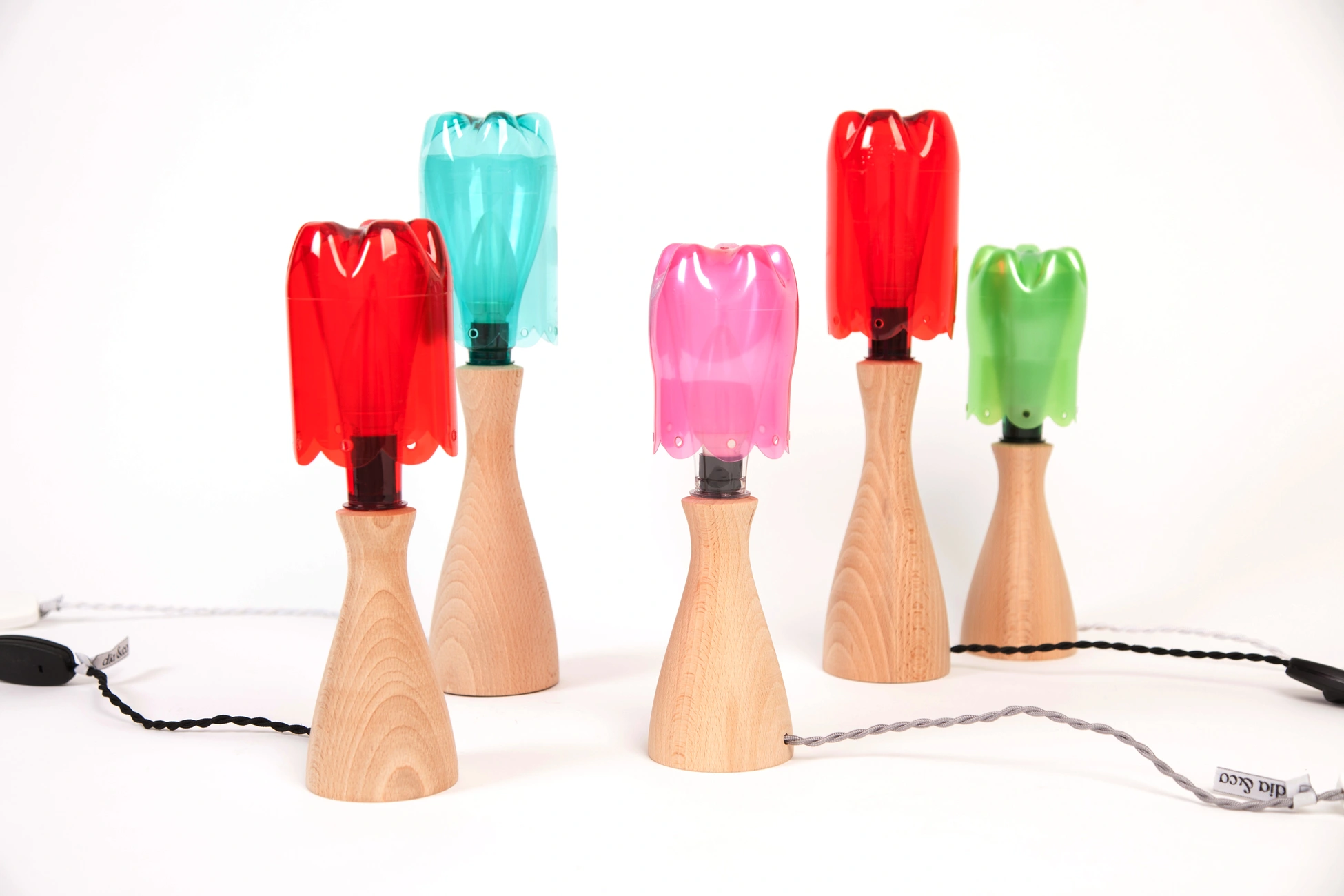 Botelia est une lampe d'ambiance LED en hêtre, mettant en scène la bouteille plastique sous toutes ses formes et couleurs. Cette petite lampe festonnée revisite le style des années 60 par la fluidité de ses pieds et les couleurs de ses abats-jour. Tous les objets dia &co ont été co-créés & conçus à 4 mains avec Sebastian Dittus, designer produit.