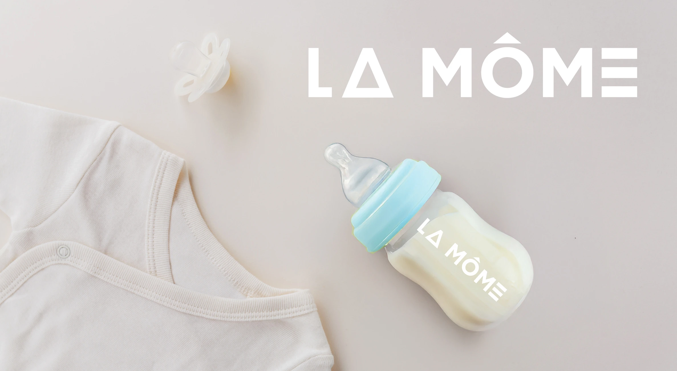La Môme est une marque qui développe des produits dans l'univers de la puériculture. Un projet de design d'identité de marque avec la création du logotype, d'une charte graphique, ainsi que d'une gamme de biberons aux déclinaisons graphiques et colorées. Un thème doux aux animaux en noir et blanc laiteux.