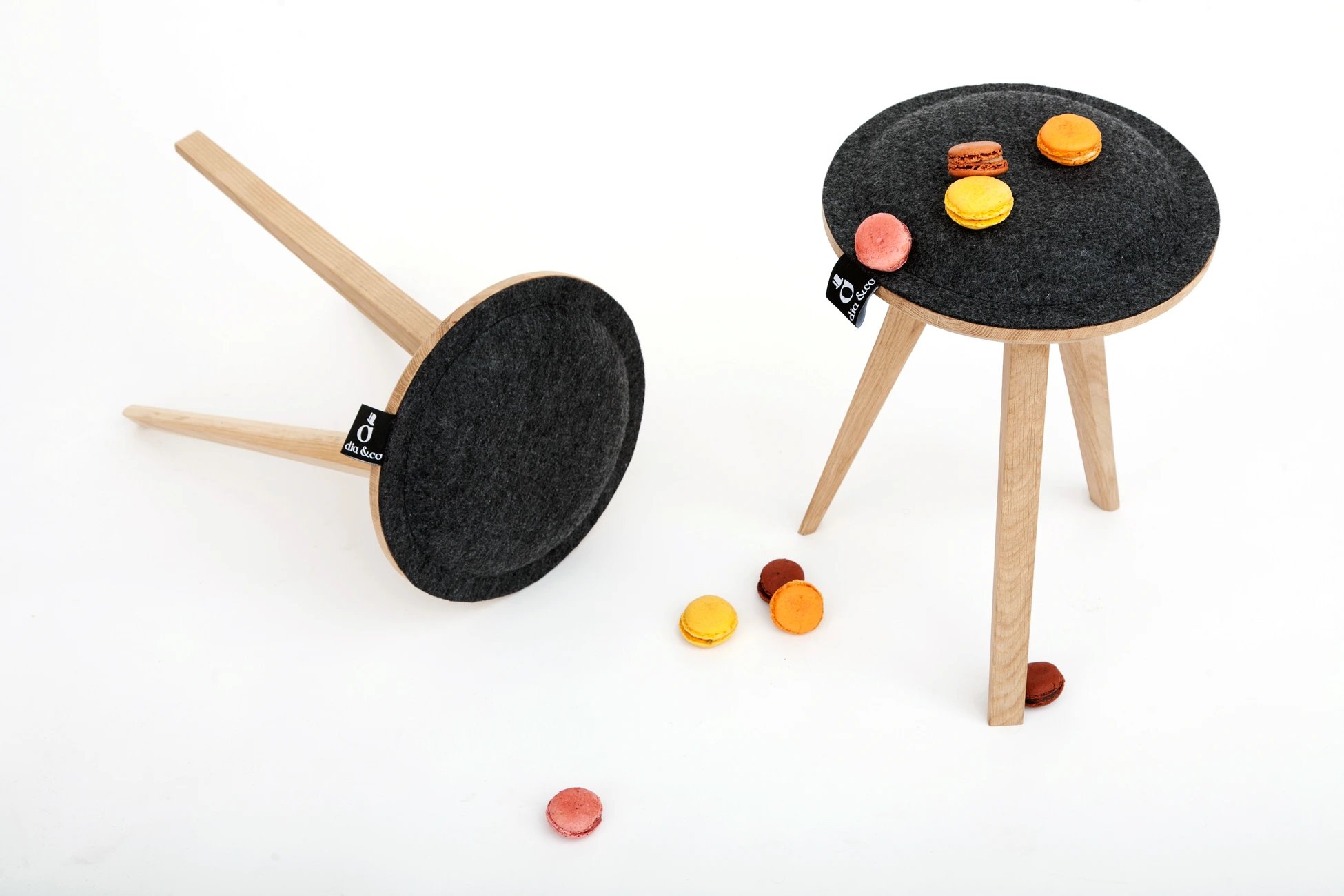 Régliss´ est un tabouret élégant dont le piètement en chêne est surplombé d´une assise faite d´un rouleau de ceintures de sécurité automobile surcyclées, doublées de feutre. La noblesse du chêne naturel alliée à la brillance du nylon des ceintures en font un objet à la fois classe et «cosy» aux lignes épurées. Tous les objets dia &co ont été co-créés & conçus à 4 mains avec Sebastian Dittus, designer produit.